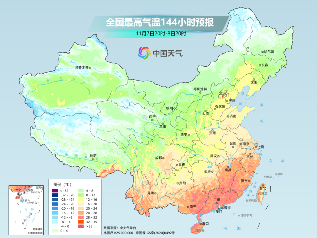 降温方面。5日至9日,新一股较强自西向东影响我国大部地区,长江以北大部地区,上述地区气温普遍下降4~8℃,局地降温10℃以上。