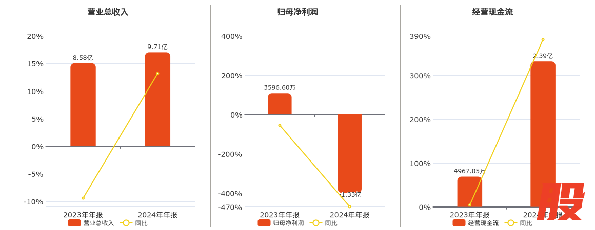 公司营业总收入为9.71亿元兆富配资,在已披露的同业公司中排名第8。归母净利润为-1.33亿元,在已披露的同业公司中排名第6,较去年同报告期归母净利润减少1.69亿元,同比较去年同期下降469.37%。经营活动现金净流入为2.39亿元,在已披露的同业公司中排名第6。